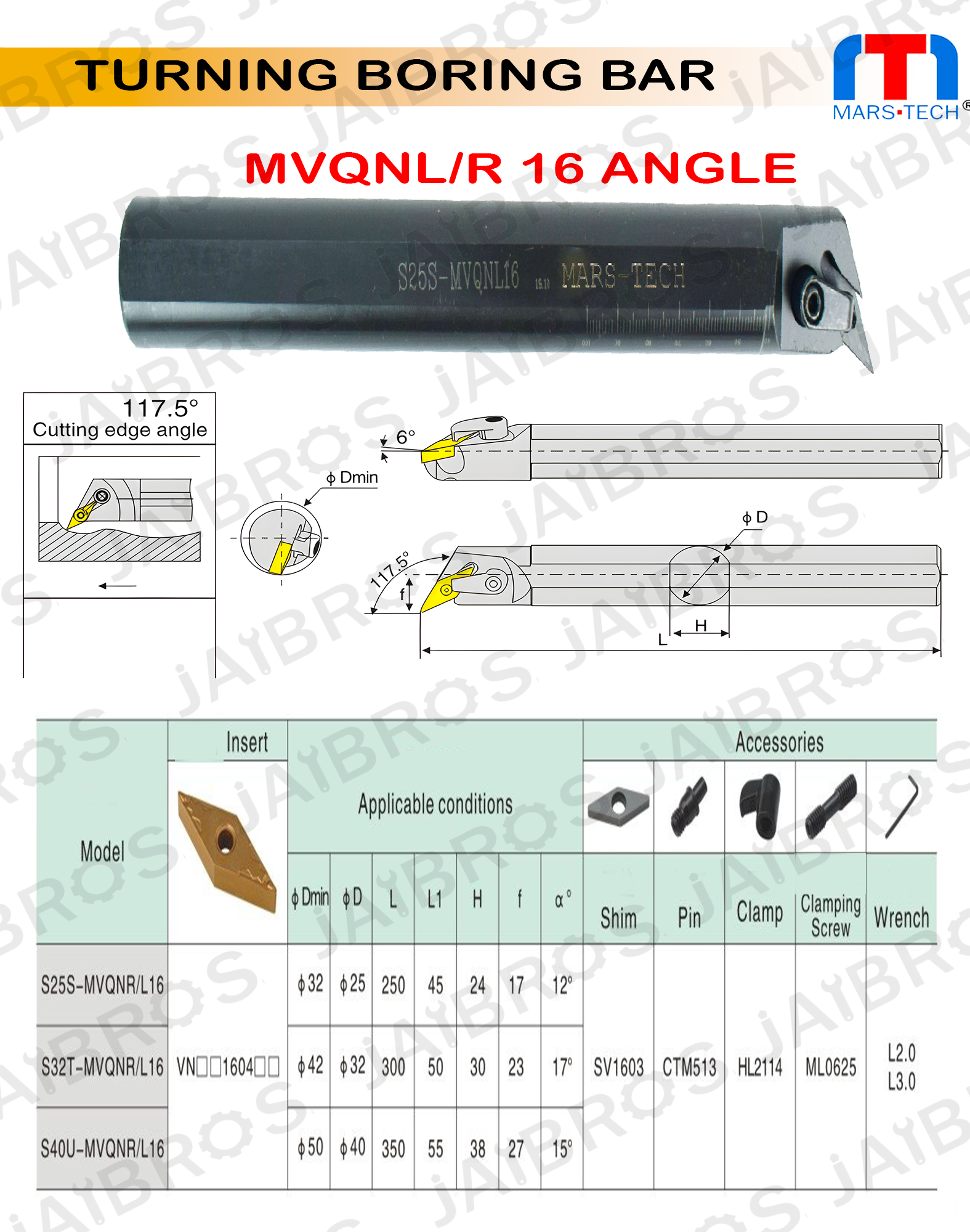 MVQNR/L VNMG1604 boring bar angle Boring Bar dia 25/32 pack of 1
